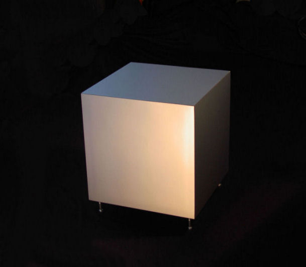 Active Sub Aluminium 25 – 50/150 Hz 150 watt 30x30x30cm 10.1 kg aansluitbaar bij versterker op cinch van subwoofer uitgang of luidspreker uitgang in Aluminium kersen of zwart hoogglans uitvoering. 1999,- euro